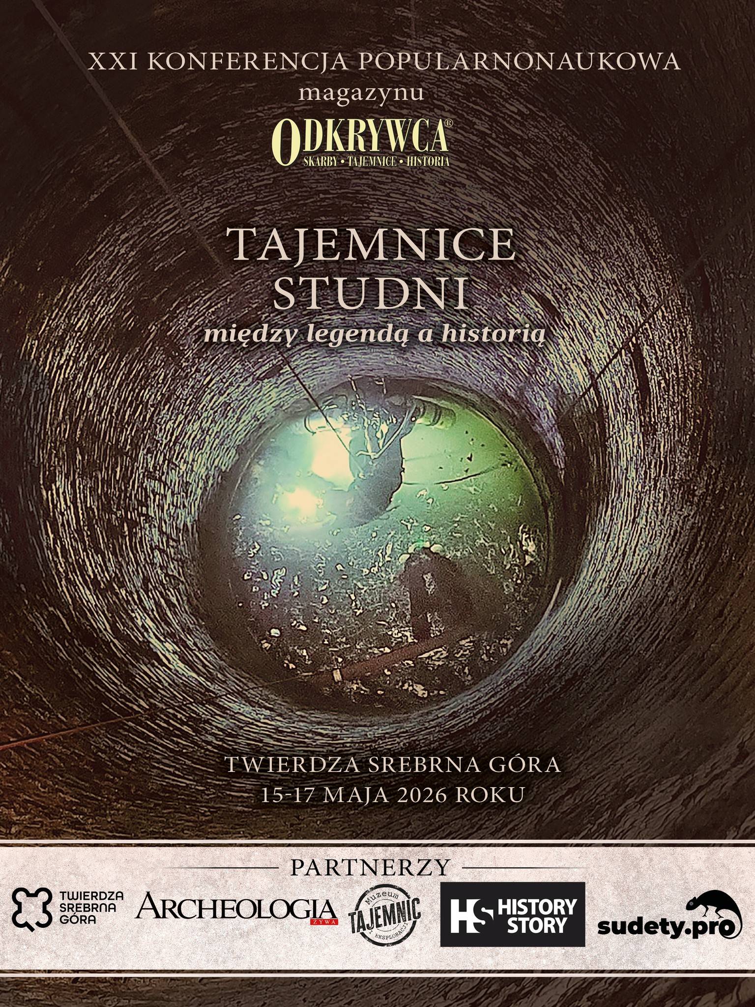 Po 20 edycjach konferencji „Odkrywcy” czas na zmiany. W w dniach o 15–17 maja 2026 roku odkryjemy historię z szerszej, interdyscyplinarnej i odważniejszej perspektywy. Pierwsza odsłona nowego cyklu poświęcona jest studniom – obiektom pełnym prawdziwej historii i… prawdziwych legend. W programie: wykłady historyków, archeologów i pasjonatów, pokazy filmów, nocne zwiedzanie Twierdzy Srebrna Góra, wejście do kopalni srebra, a nawet próba eksploracji jednej ze studni z użyciem podwodnego pojazdu.